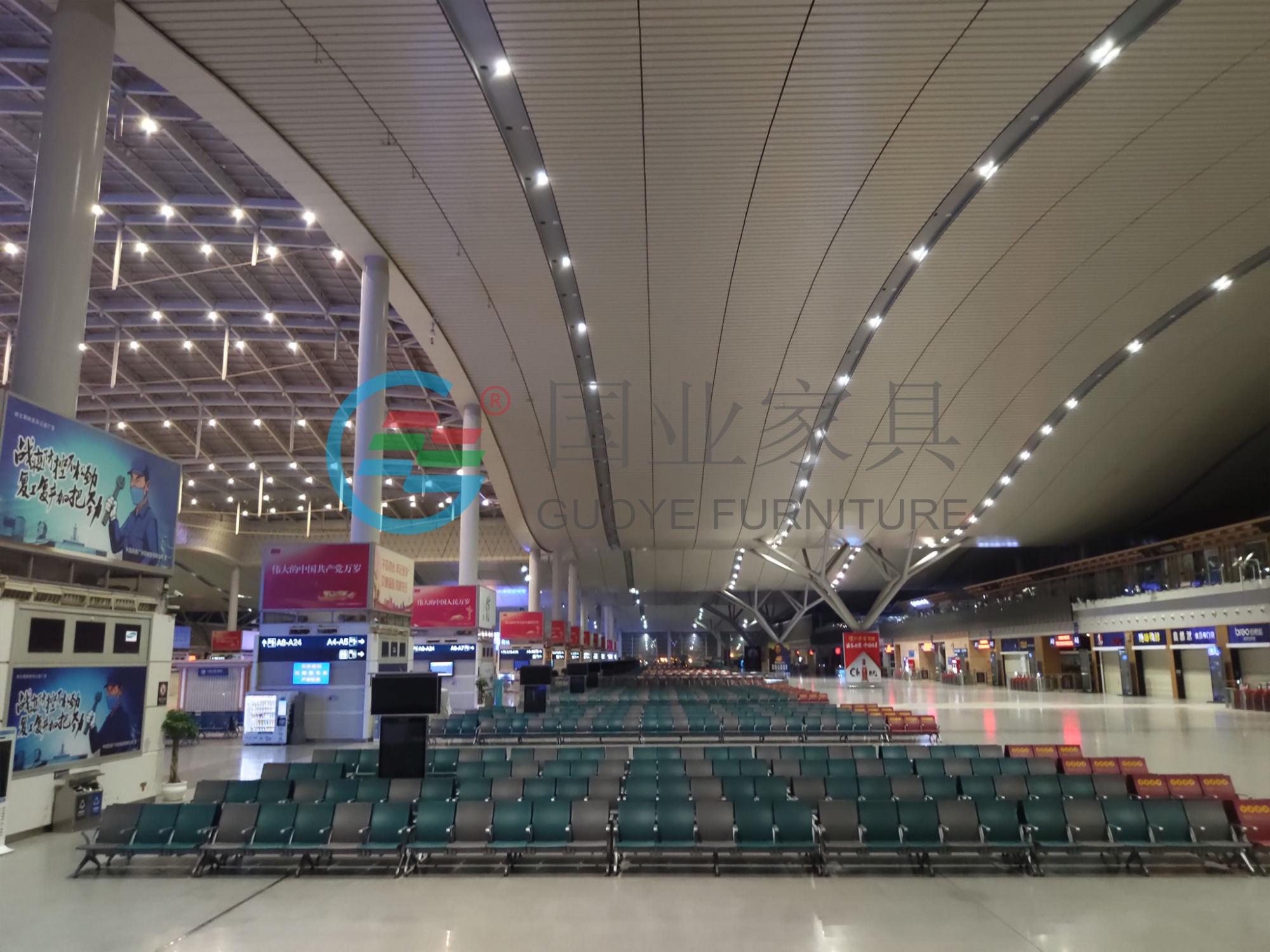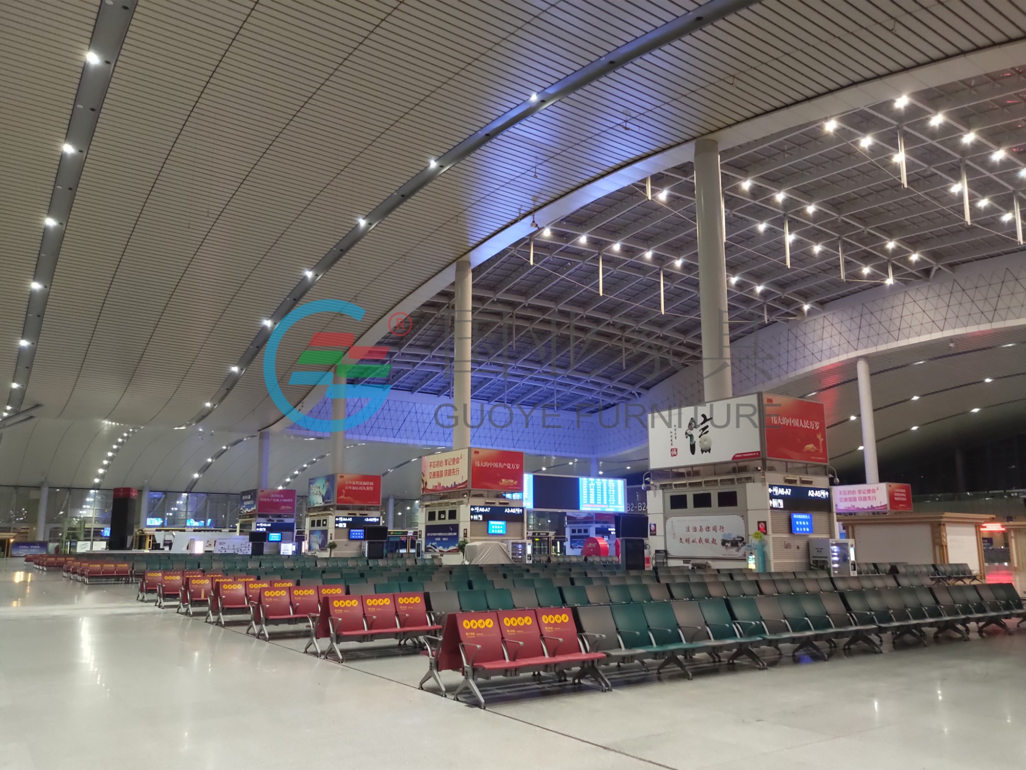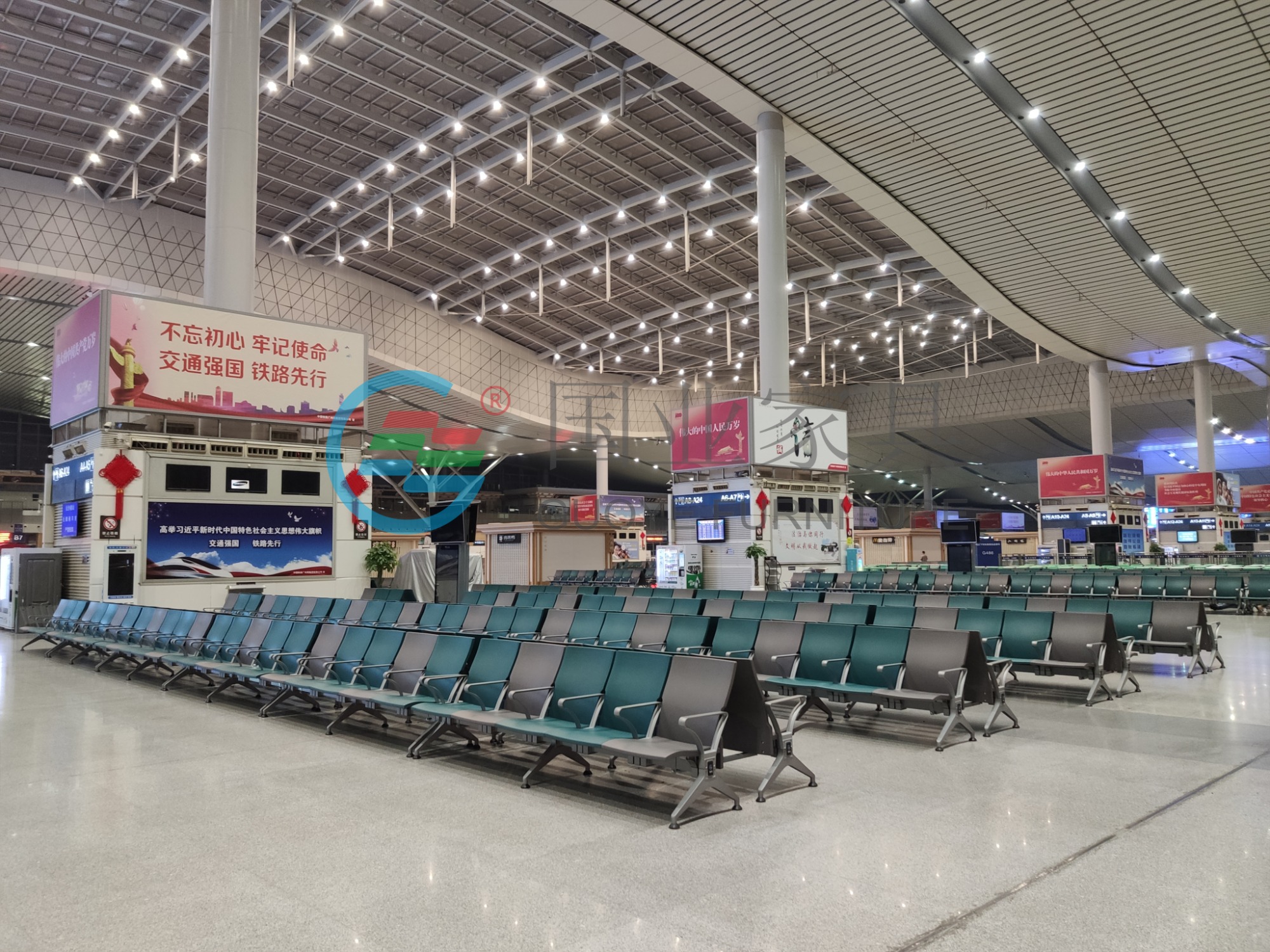 為配合長沙南站2021年候車廳升級改造座椅更換計劃,國業家具本著服務至上,質量為本的態度;深度剖析旅客行為習慣和功能偏好,結合長沙南站的空間環境,根據車站方的具體需求為其量身打造了一套完善的候車廳空間解決方案,更好的提升長沙南站候車廳的服務檔次,塑造友好而開放的車站服務形象,使乘車旅客享受到更加舒適的候機環境,成功打造完成了長沙南站候車廳24個進站口等候區域的座椅更換項目.